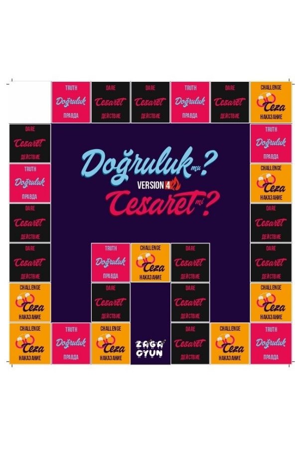 "Doğruluk mu Cesaret mi 4" oyunu, 3 veya daha fazla oyuncu gerektirir. Her oyuncu sırayla zar atar ve panoda ilerlediği yere bağlı olarak doğruluk, cesaret ya da ceza kartını çeker. Bu oyun sadece yetişkinler içindir. Oyuna başlamadan önce tüm oyuncuların rızası alınmalıdır. Heyecanlı ve farklı bir deneyim yaşamak istiyorsanız, "Doğruluk mu Cesaret mi" tam size göre!